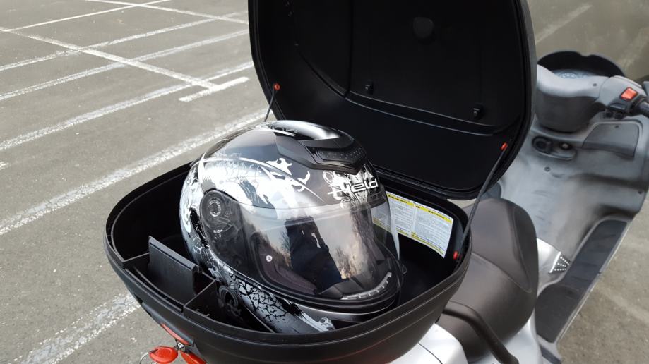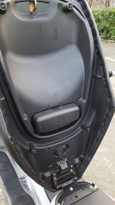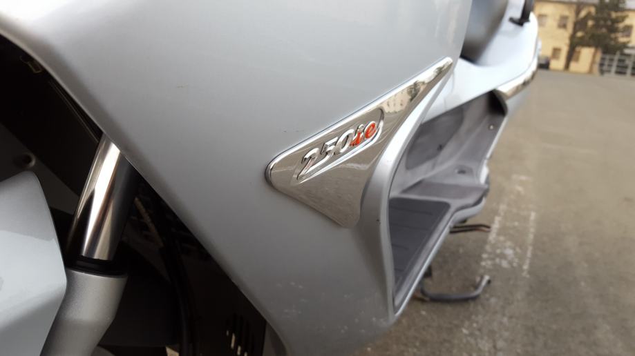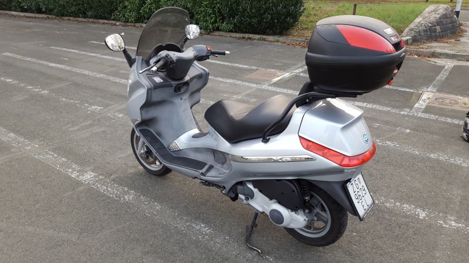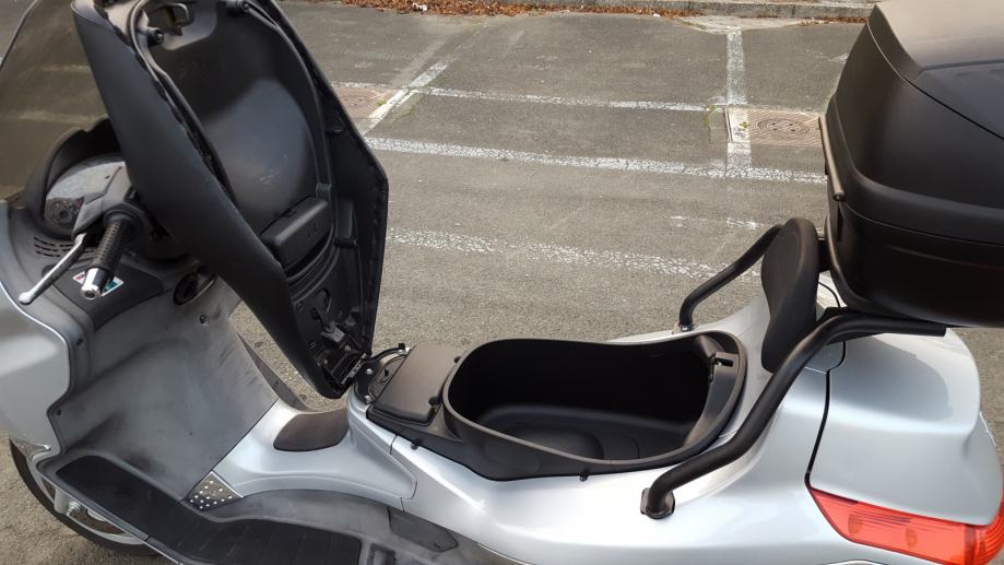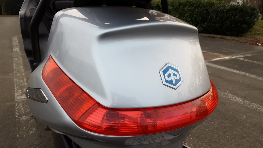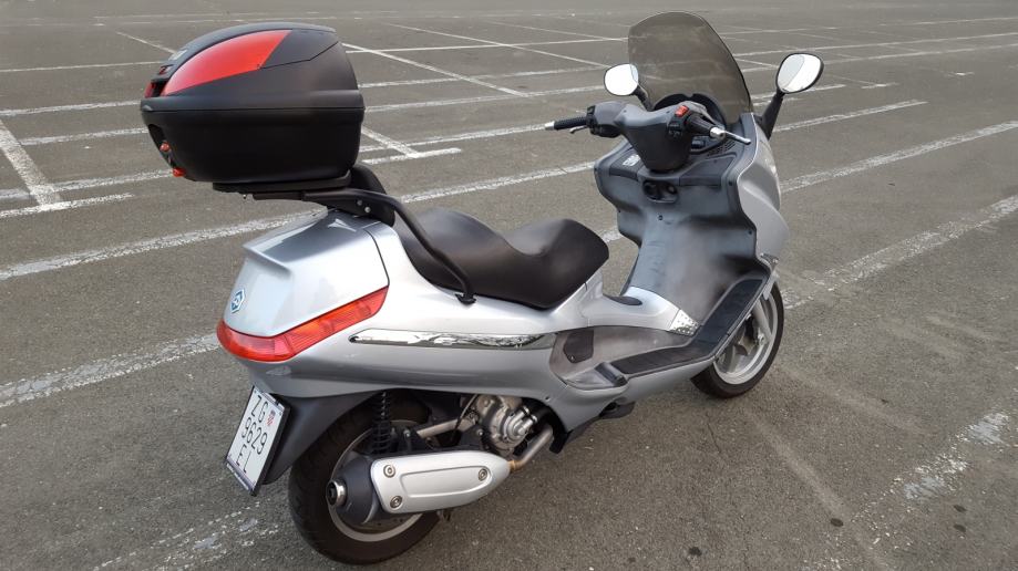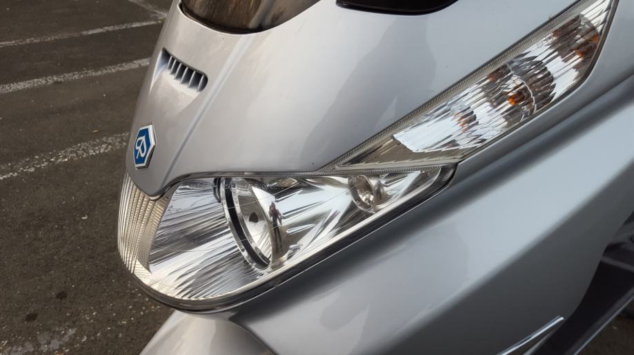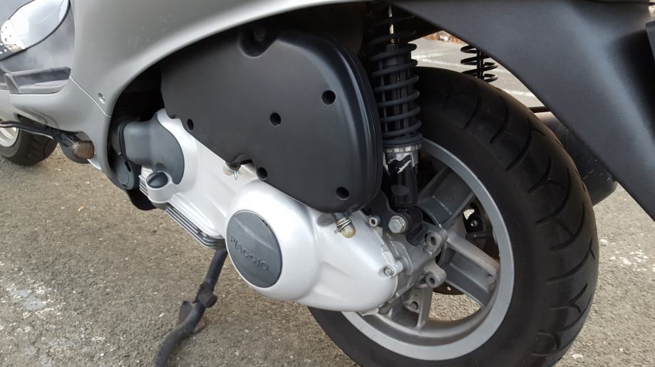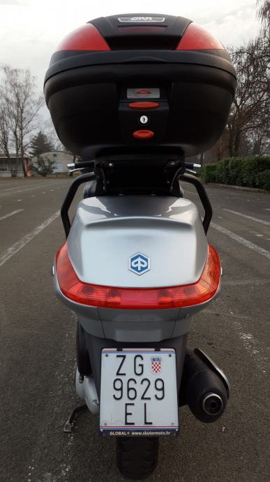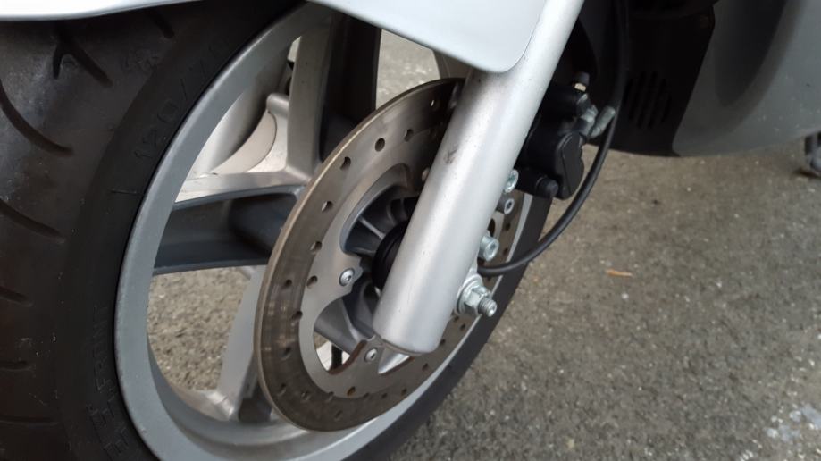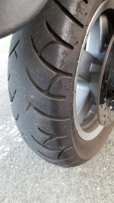 Gume su još dobre, kupljene 12.03.2014. u Motoboxu, Metzeler FeelFree prednja 120/70-14, stražnja 120/70-12, ukupno 703,95 kn. Novi akumulator Beren 12 V 12 Ah kupljen 13.09.2014 209,16 kn. Svi servisi obavljeni i upisani u servisnu knjižicu, po stavkama računa se vidi što je sve rađeno. Od kada je u mom posjedu, svi servisi obavljeni u bivšem Piaggio ovlaštenom servisu Global Plus d.o.o. Pešćenica, Zagreb. Prethodno je servisiran u Varaždinu, autokuća Lončar (ovlašteni). Tamo ga je i prvi vlasnik kupio 31.05.2006.