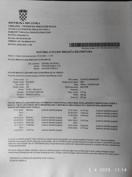 2007g, 14tkm (stvarnih),posjedujem i ispis tehničke stanice.
