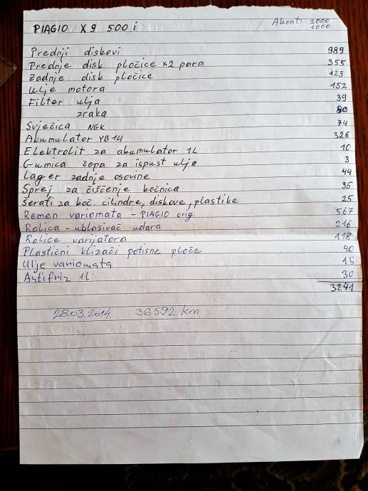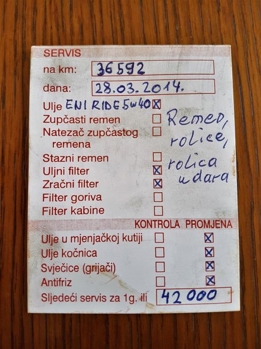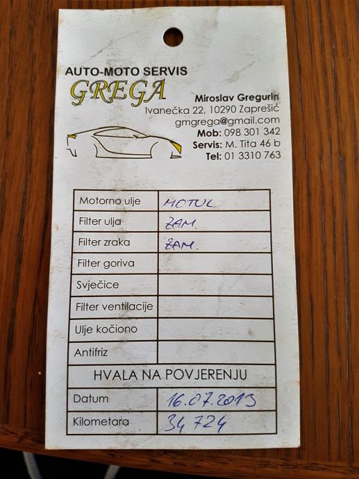Redovito servisiran (podaci o nekim od zadnjih servisa među fotografijama), nove Michelin gume, diskovi, disk pločice, akumulator, pumpa vode, remen, rolice...
