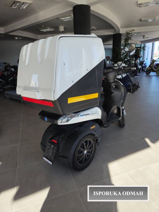 Kad pomislite na gradsku dostavu, pomislite na Mymoover. Ima 3 kotača, stražnji prtljažnik naginje se s vozilom pružajući stabilnost i upravljivost, a dizajn često zaustavljanje i kretanje čini jednostavnim, sigurnim i intuitivnim. Prtljažni prostor raspoređen na 3 pametno dizajnirane nosive strukture više je nego dvostruko veći od usporedivih skutera na dva kotača. Zadnje, ali ne i najmanje važno, dostupna je i verzija s "crnom kutijom" i čitačem identifikacije, što znači da je Mymoover u svakom trenutku povezan, a time i praćen.