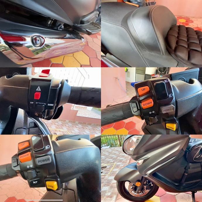 ABS, putno računalo sa LCD ekranom, termometar, električno podesivi vjetrobran, električno sklopivi retrovizori (prikladno za voznju kroz gradske gužve), nova generacija grijanih ručki volana sa tri razine grijanja gdje je kontrola grijača diskretno integrirana u lijevu ručku volana sa samo jednom tipkom umjesto prijašnje, nespretne kutijice ispod lijeve ručke, grijano sjedalo vozača, grijano sjedalo suvozača, naslon za suvozača, prilagodljiva, lumbalna potpora vozačkog sjedala, 12 volti utičnica u glavnom pretincu ispod volana, osvijetljenje velikog pretinca ispod sjedala, parkirna kočnica, original ''Burgman'' torba za sredisnji greben (tunnel bag).