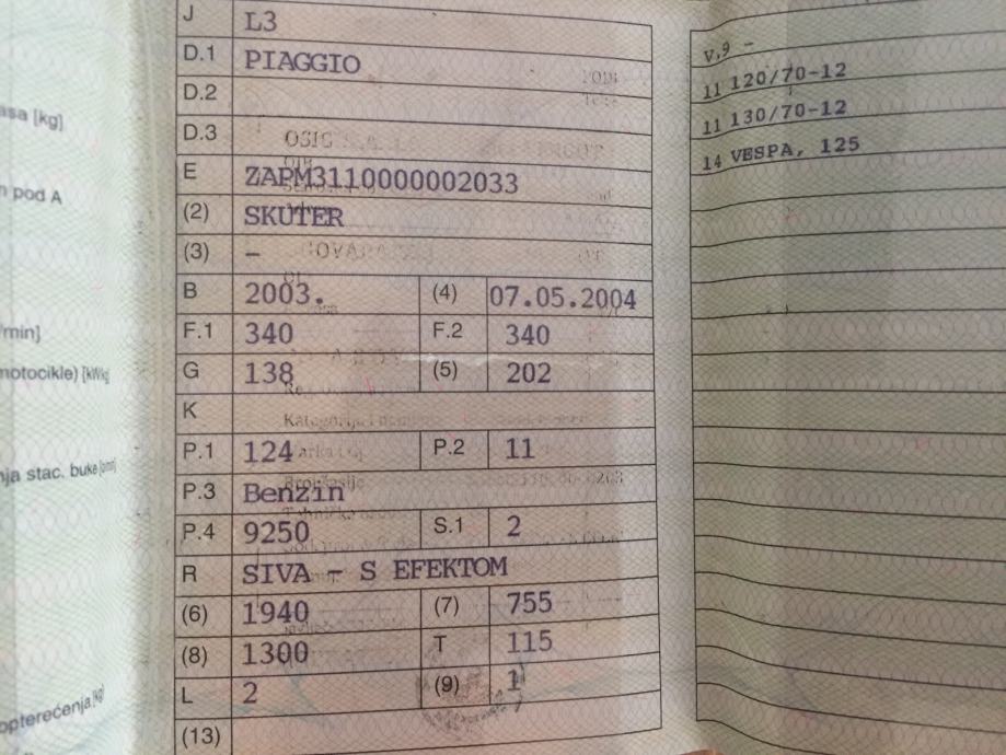 Vespa GTS 125L reg. 05/2022, 2003 god.