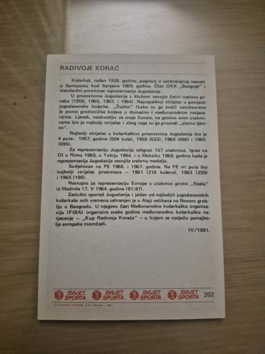 664. Kartica Svijet sporta - Radivoje Korač