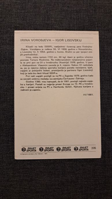 791. Kartica Svijet sporta - I. Vorobjeva - I. Lisovskij