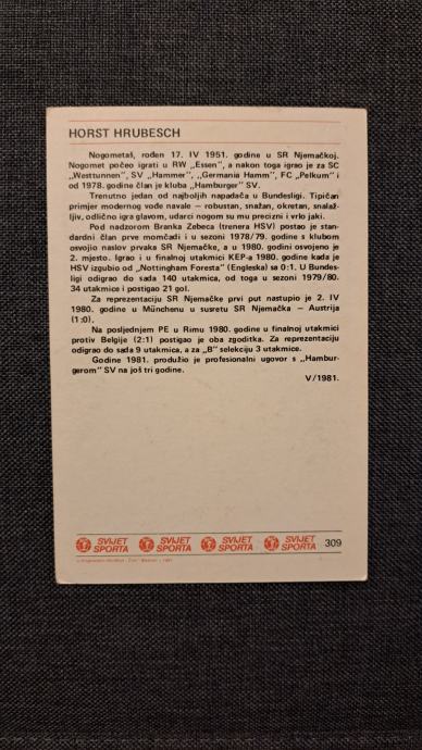 799. Kartica Svijet sporta - Horst Hrubesch