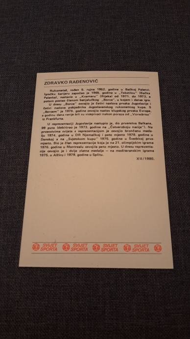 850. Kartica Svijet sporta - Zdravko Rađenović