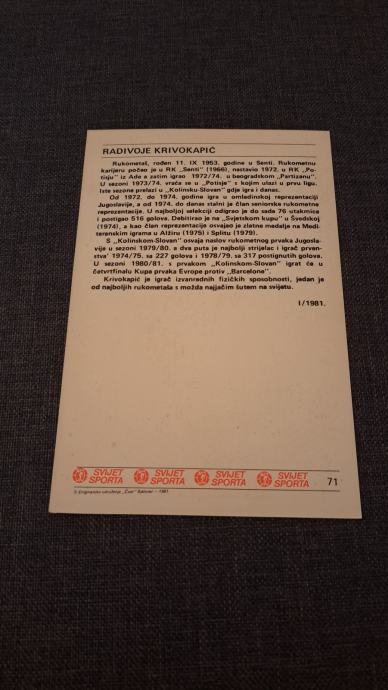 851. Kartica Svijet sporta - Radivoje Krivokapić