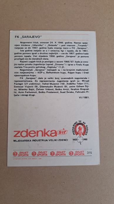 862. Kartica Svijet sporta - FK Sarajevo