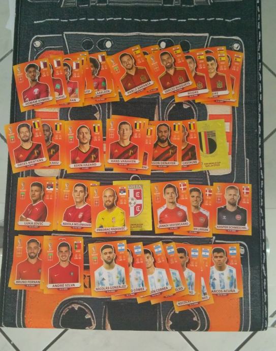 Novi album mekih korica Panini Qatar 2022 i 200-tinjak sličica. U albumu je početnih 6 sličica. Sličice su u izvrsnom stanju, vidljivo je i na slikama. Nema sličica Messija, Ronalda, Modrića, Mbapea i Neymara. Ali ima dosta velikih imena, nešto sjajnih sličica i nekoliko Hrvata. Skupljane za kompletnu kolekciju , ali sada se prodaju i vjerojatno je dobar početak za skupljanje kolekcije.