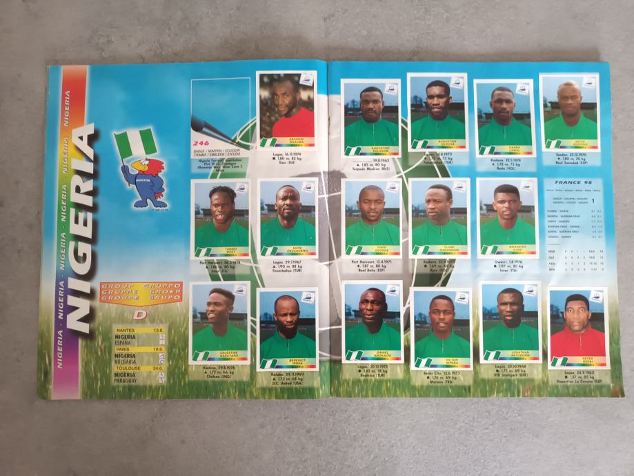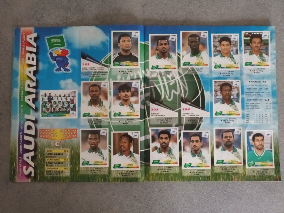 Zaljepljeno je 14 grbova, od tih 14 i grb Španjolske. Zaljepljene su početne 3 sjajne sličice, Ronaldo, Zidane, Adams.