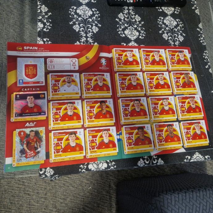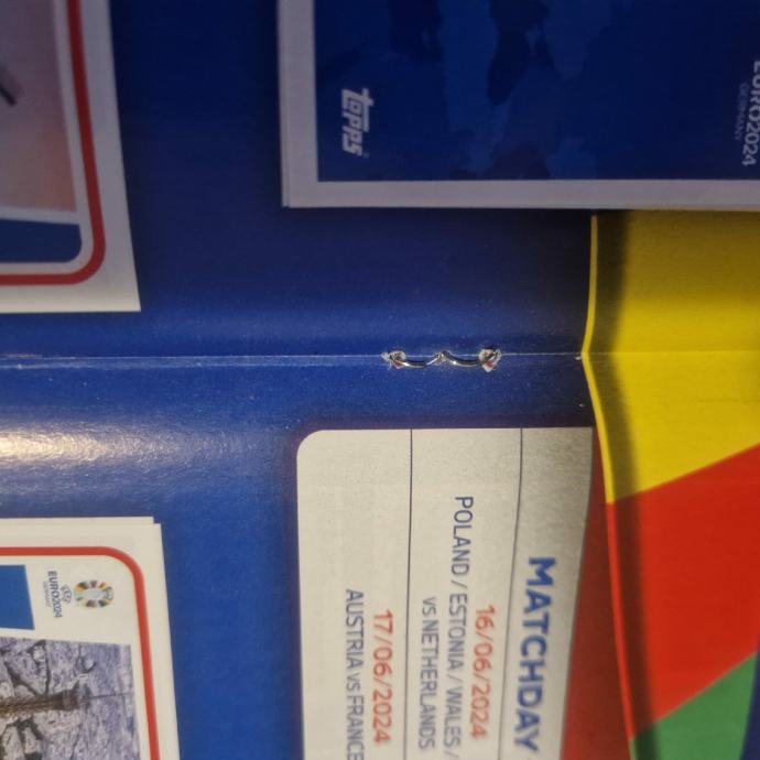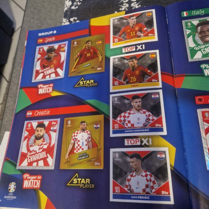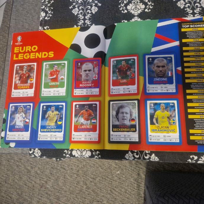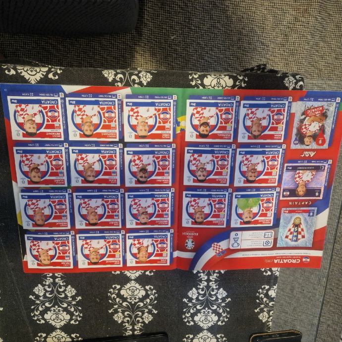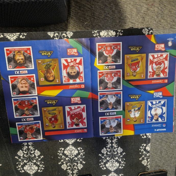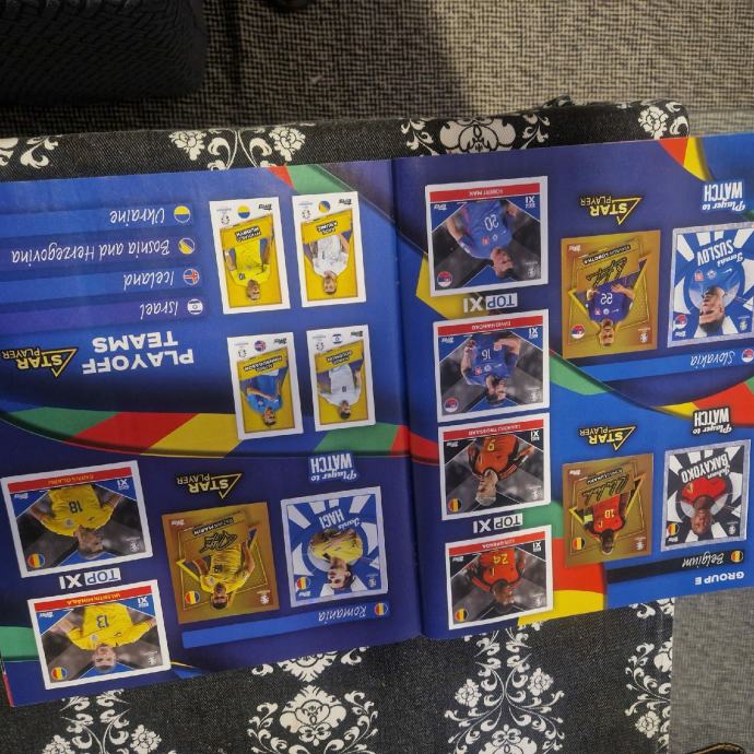 Album sa svim polijepljenim sličicama sa posljednjeg europskog nogometnog prvenstva 2024. Album je u odličnom stanju, sredina jako dobro drži. Nisu upisivani nikakvi rezultati niti lijepljene dodatne sličice.