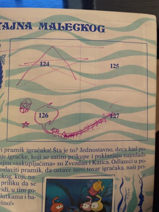 Djelomično popunjen, malo pošaran i na jednom mjestu je zalijepljena barbie sličica