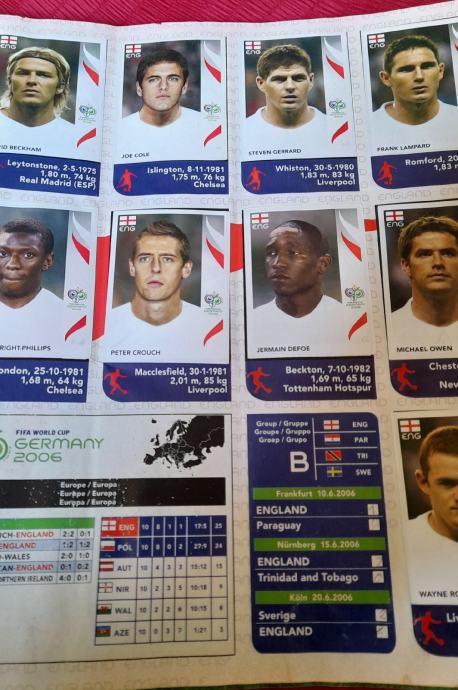 Germany 2006 - Fifa World kup,izdanje Panini, popunjen sa 578 sličica od 596 , nedostaje 18 sličica. Napomena: