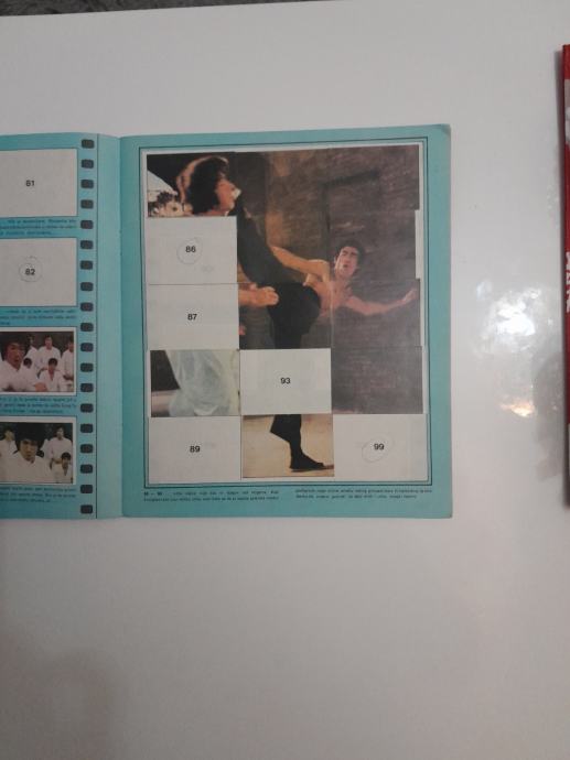 Očuvanost - 5 . Od 300 sličica nedostaje 93 komada ( znači ima 207). Sličice su sa prizorima iz filma U zmajevom gnijezdu (Bruce Lee). Izdanje : Dečje novine , Gornji Milanovac 1977.