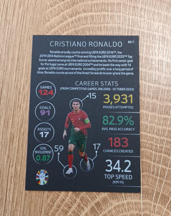 Black Edge kartica Cristiana Ronalda iz kolekcije Topps Match Attax Euro 2024. Cijena 15e s uključenim slanjem poštom preporučeno ili putem Box now