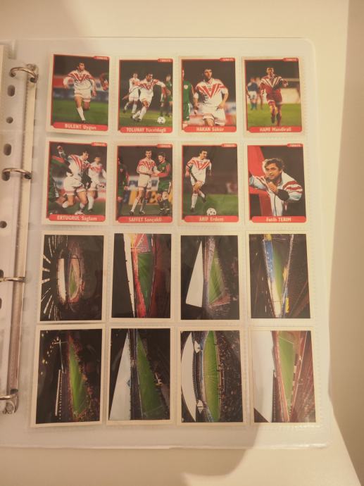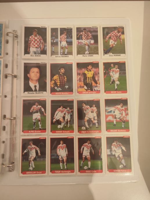 Prodajem Euro foot 96 kompletan set sa fotografija. Prvo pojavljivanje hrvatske reprezentacije, album je kod nas izašao nešto ranije od Paninijevog i osobno mislim da ga debelo šiba što se tiče dizajna, jedino što nedostaju su neke sjajne sličice koje su ubacili u France 98... Sve složeno u folije i binder...