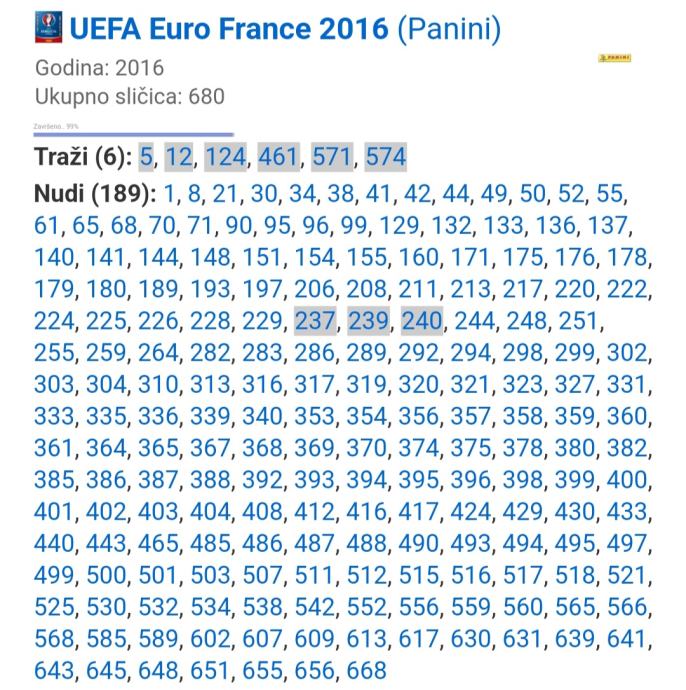 Prodaja ili zamjena za ostale vrste slicica ..0.20 eur komad ili popust na vecu kolicinu ili bunt euro 2016