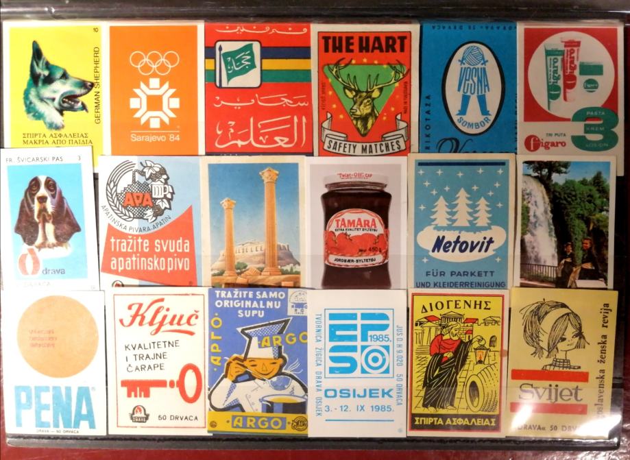 18 starih izvrsno očuvanih naljepnica za kutije šibica.