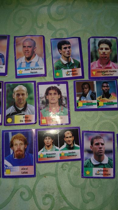 40 sličica poznatih nogometaša tog vremena (svjetsko prvenstvo 98): de Wilde288, Les Ferdinand433, Bouazizi448, Zitouni437, Trabelsi 442,Caliguri357,Abundis316,Suarez247, Struway244, Madani159, Davino305, Kolumbija (Valderama) 402, Balakov/Letchkov 261,Iran336,Burley/Boyd62,Nyathi/Radebe 194, Stoichkov/Penev 263, Yoon/Won330, Schjonberg 185,Rae/Chul 326,Borkelmans292,Alves22,Campbell 424, Lalas358, Seaman 420,Nakisa/Hajesbouei389,Stewart493,Olmo 315,Pasarella485, Fertout 39,Perez 216,Camacho34,Misse/Mboma132,Sellimi 452,Aspe314,Babangida229,Prunea 404,Lassiter369,Amunike 235,Ramirez 313,Ben Slimane 450, Goodison 490,Rojas 254,Tony Adams422, Chiesa 84.