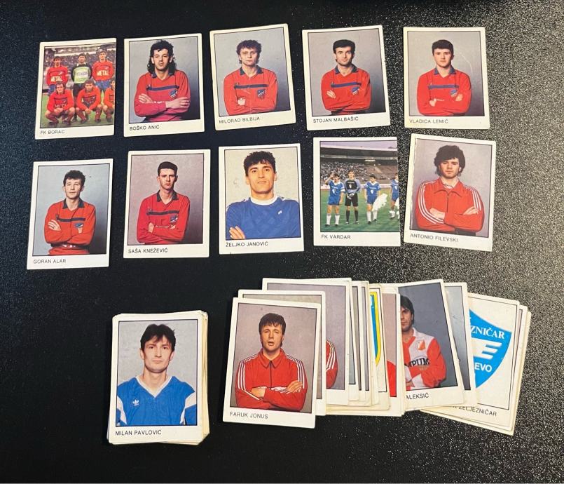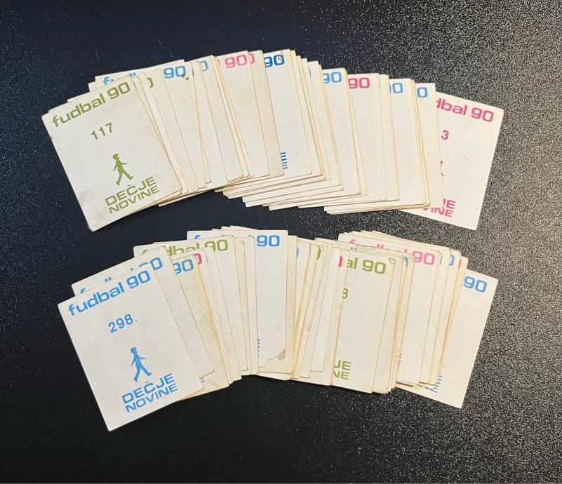 Stare sličice za ex-yu album Fudbal 90, ima lošijih ima i jako dobrih sličica. Dosta rijetkih sličica. Cijene od 0,50-10 €. U lotu ima 70 komada, cijena za cijeli lot 120 €