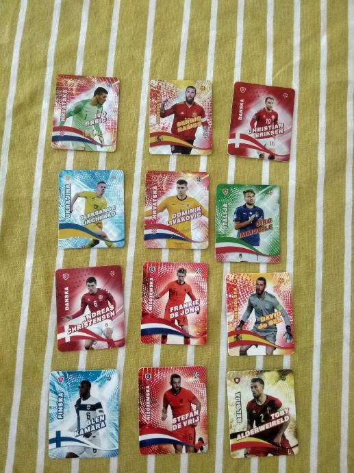 12 kartica, gornja dva reda su sjajne kartice. Plus 12 neotvorenih paketića. Komplet 50 kn.