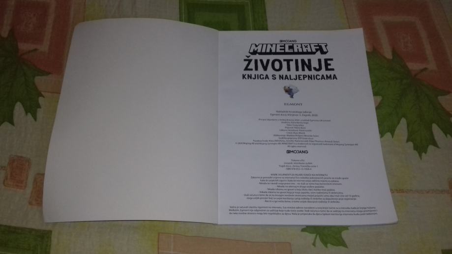 Minecraft životinje, knjiga s naljepnicama - 2020. godina, u odličnom stanju.