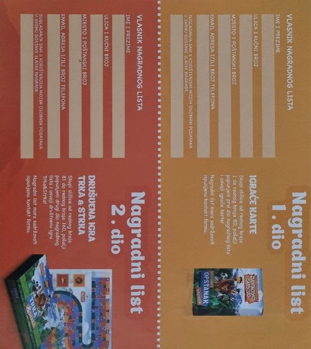 Ispunjeni nagradni list 1 i 2 za album Životinjsko carstvo