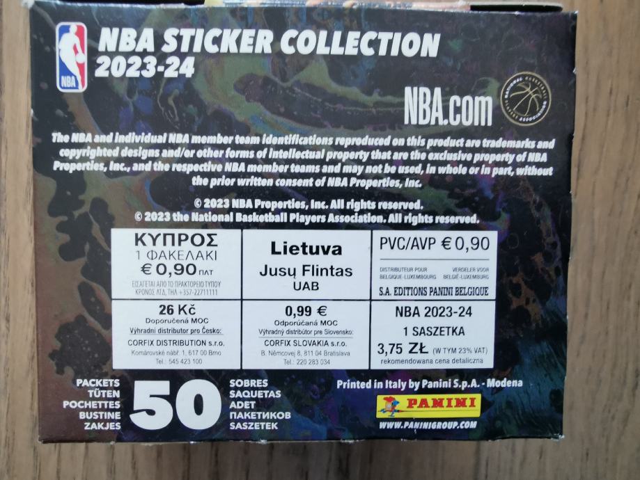 Kutija s 50 paketića sličica NBA 2023-2024, Panini.