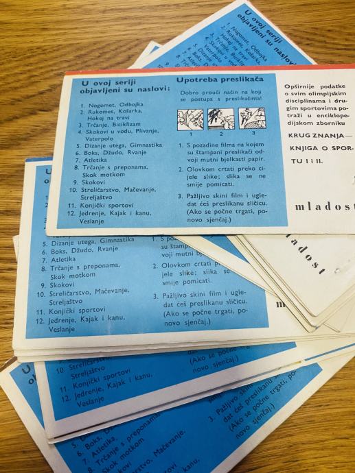 Olimpijski sportovi ,sličice preslikači.Mladost,komplet 1-12