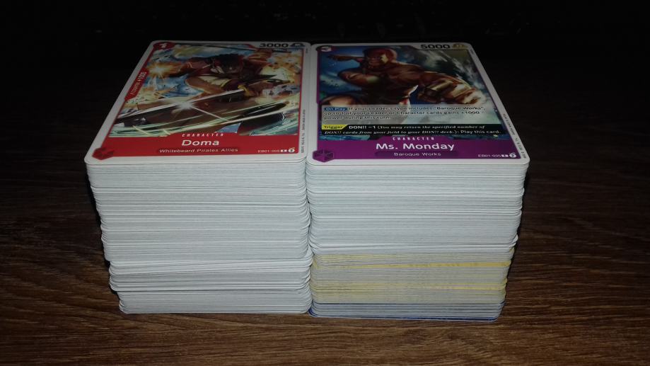 One Piece TCG lot od 290 karata iz raznih setova bez duplikata, u odličnom stanju.