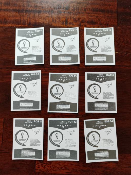 Lot od 9 sličica iz kolekcije PANINI QATAR 2022 ORYX u odličnom stanju, iz paketića.
