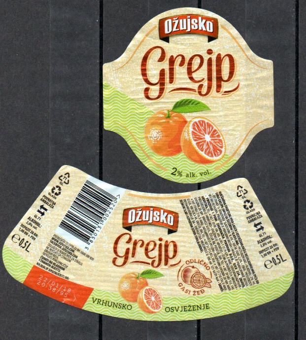 - predzadnja etiketa je Ožujsko pivo Grejp iz 2017.g.