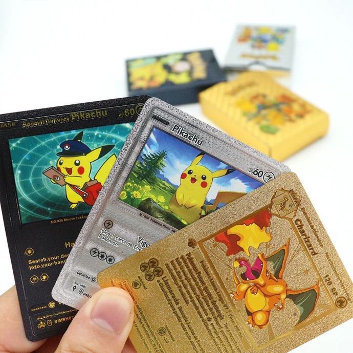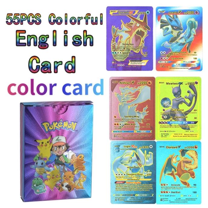 Originalna šarena karta Pokemona 55 komada Pikachu Charizard Mewtwo Engleski Španjolski Francuski Njemački Korejski Zlatne Foil Karte Igra Bitka