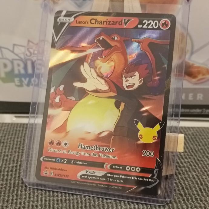 Original Lance's Charizard V karta iz 2021. godine. Karta je u NM stanju, odmah je zaštićena sleeve-om i stavljena u toploader.