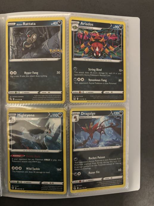 Pokemon karte 120 karata bez duplih zajedno sa albumom. U albumu su razne karte od 1999 godine do 2023 godine.