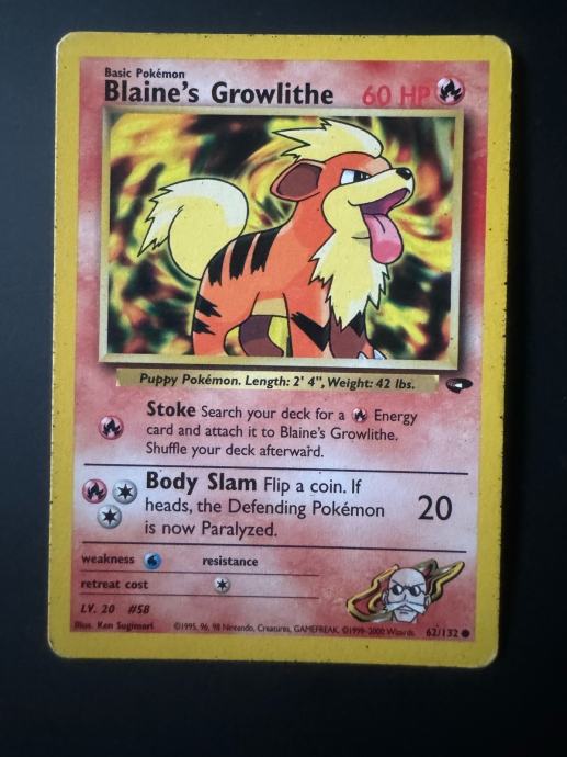 Pokemon karte: Blaine’s Growlithe 62/132 1999-2000