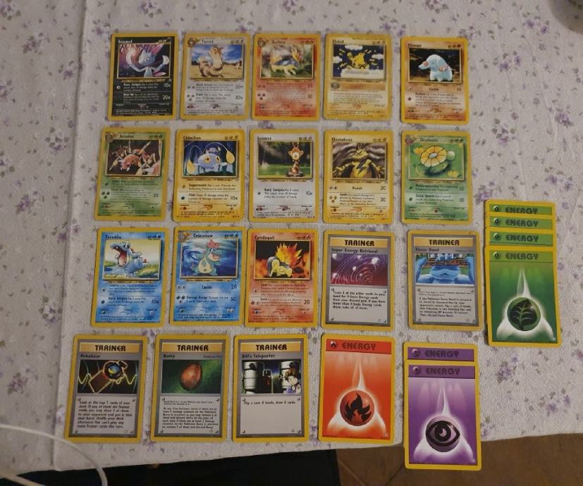 Pokemon karte iz serije Neo Genesis, stanja kao na slikama, sveukupno 25 karata. Cijena je za svih 25 karata.