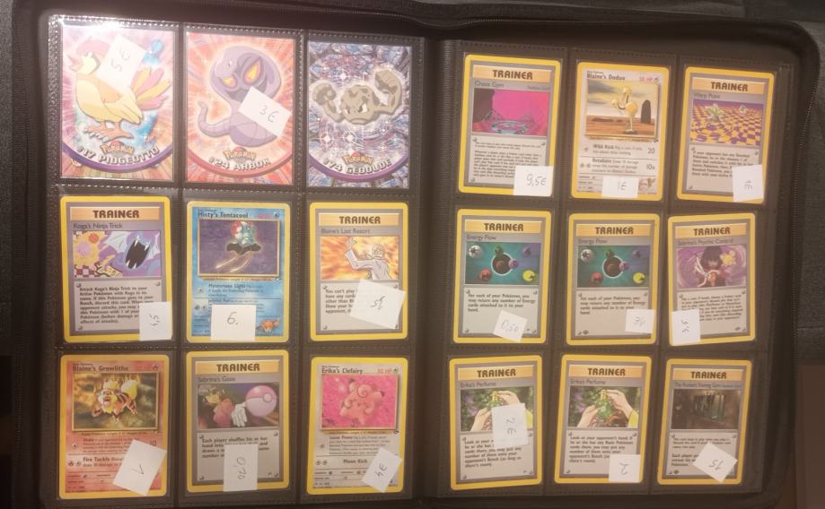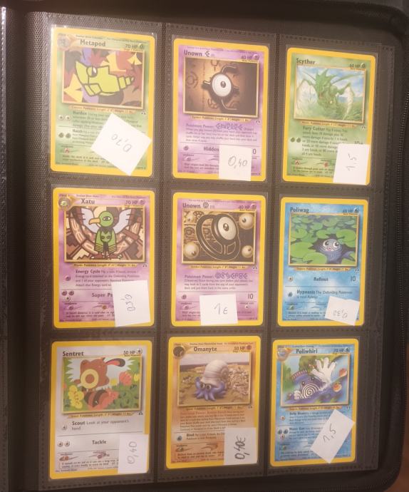 Pokemon karte iz ranih setova. Cijene fixne i istaknute kod svake karte, zainteresiranom kupcu šaljem detaljne fotografije. Nisam zainteresiran za razmjene, kompenzacije ni prodaju ispod navedenih cijena. Popust na količinu nije moguć. Slanje poštom (obično, prioritetno ili preporučeno), tiskom, box now nakon uplate na IBAN. Moguće osobno preuzimanje u Vrbovcu skoro svaki dan, sve po dogovoru. Cijene formirane sukladno stanju karata, u prijevodu - rare holo za nisku cijenu sigurno nije NM stanje