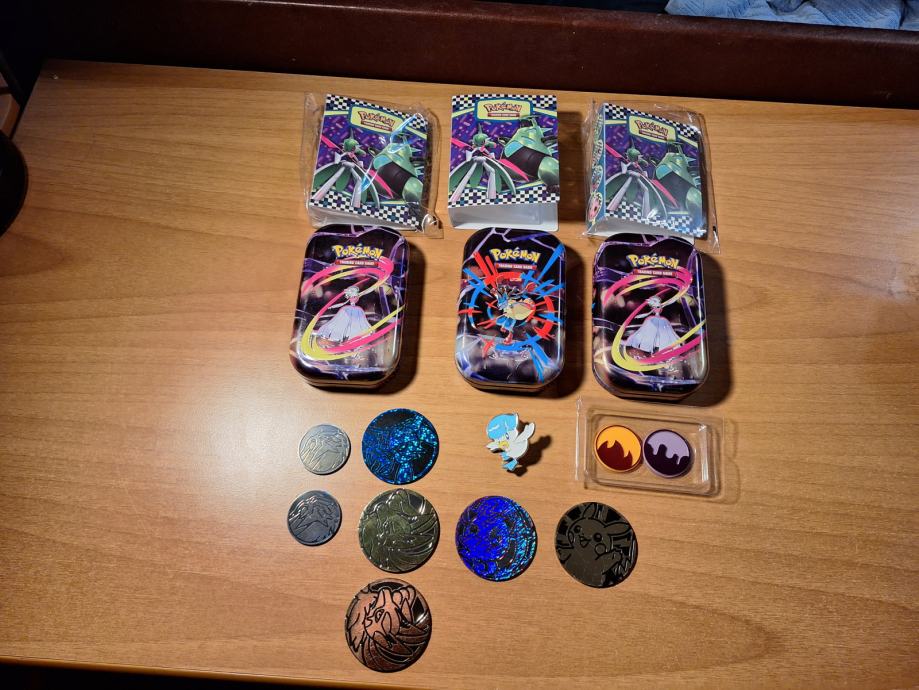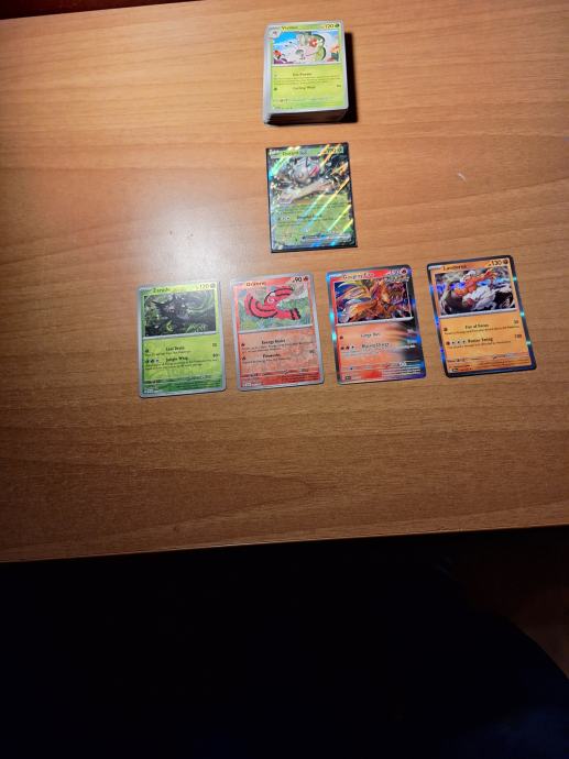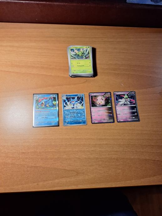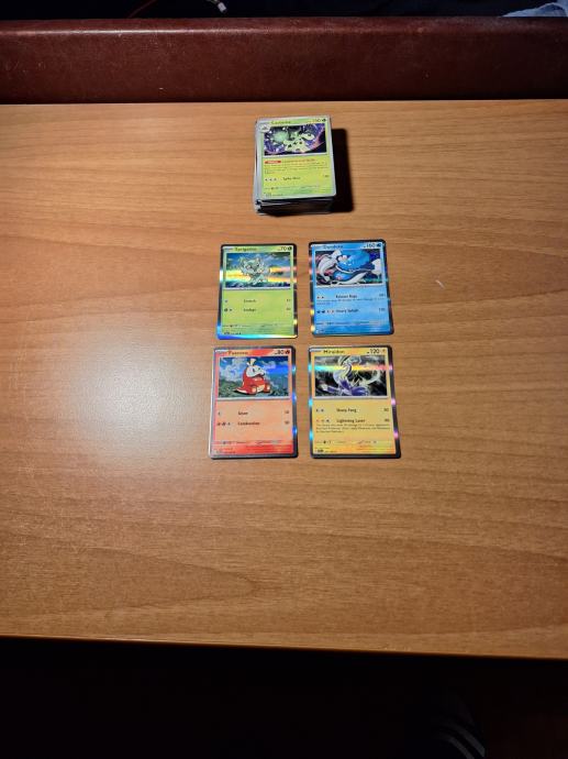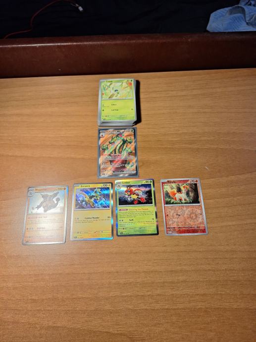 Poštovani, prodajem veliki lot Pokemon karti sa razno raznim dodatcima.Karte su original, izvađene iz boostera, ETB itd.. ove godine te odmah nakon otvaranja spremljene što znači da je stanje NM. Ne prodajem pojedinačno. Popis niže, moguća zamjena za neotvorena pakiranja Paradox Rifta ili Mege ili Phantasmala. Inzistiram na osobnoj primopredaji. Nisu sve karte slikane zbog elementa iznenađenja, nema duplih karata i ima nešto više energy i redeem karata jer nisam baš sve naveo u popisu.