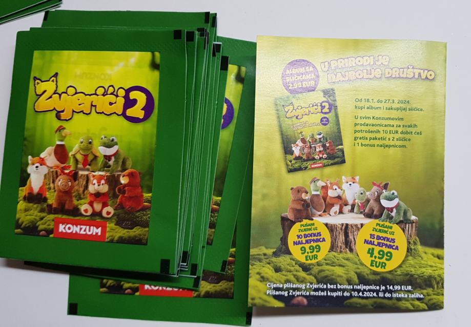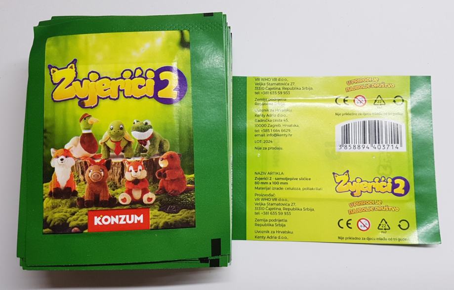 SAMOLJEPLJIVE SLIČICE ZVJERIĆI 2, KONZUM, NOVO ZAPAKIRANO, 63 KOMADA