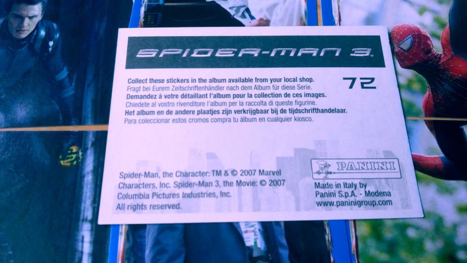 Spider-Man 3 stare Panini sličice iz 2007 god.