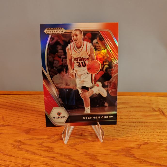 Ova kartica predstavlja izvanrednu priliku za kolekcionare da posjeduju djelić povijesti jednog od najvećih šutera u povijesti košarke. Predstavljamo 2021 Panini Prizm Draft Picks Stephen Curry karticu u popularnoj i vizualno impresivnoj Red, White & Blue Prizm paralelnoj varijanti.