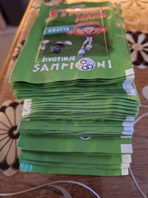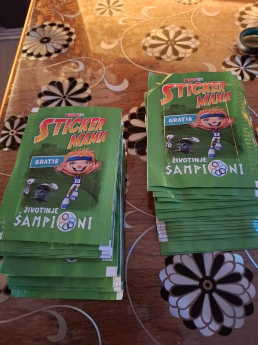 Prodajem u kompletu paketiće STIKERMANIA AVANTURA LIJEPOM NAŠOM, imam na prodaju 86 komada, paketići ŽIVOTINJE ŠAMPIONI 48 komada,,,šaljem po dogovoru, pošta , tisak ....