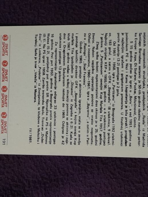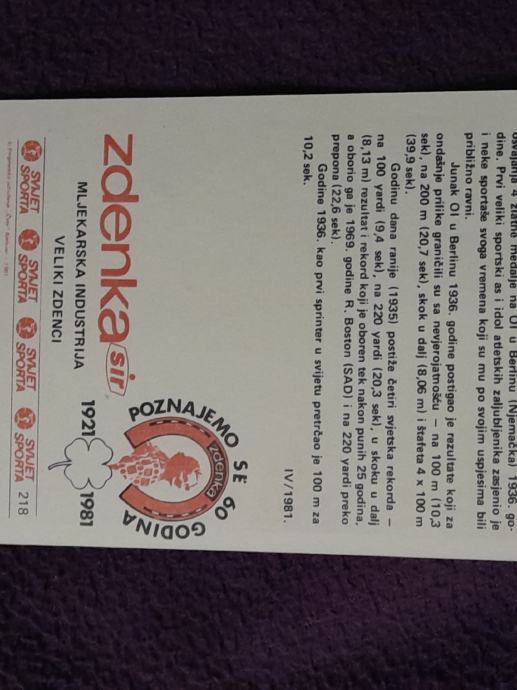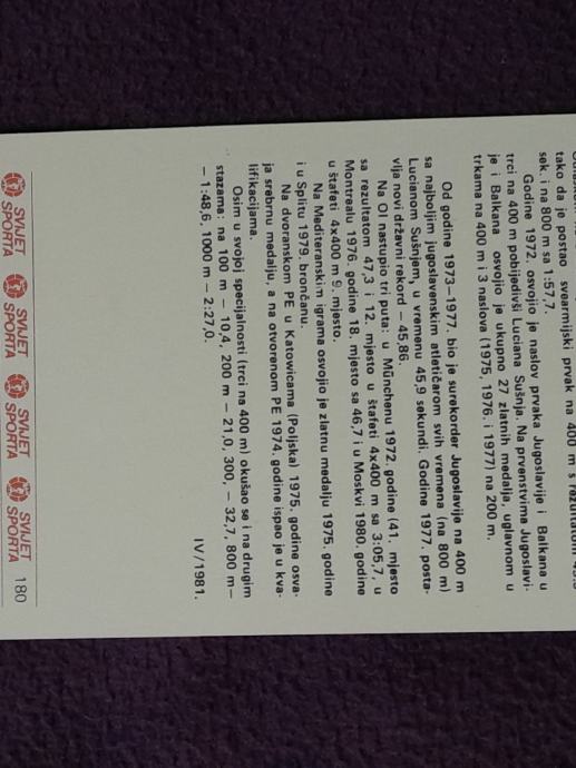 Mijenjam ili prodajem kartice Svijet sporta.Joško Alebić 180,Miloš Milutinović 191,Jesse Owens 218,Dragan Zdravković 81,Miruc Jifter bez broja,Ragbi klub Zagreb 78,Odbojkaški klub Mladost Monter bez broja,Mima Jaušovec bez broja.Vrlo dobro očuvano.Kontakt mobitel 091 9792745.Franjo