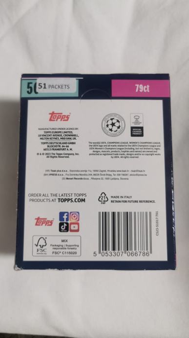 Prodajem TOPPS CHAMPIONS LEAGUE 23/24 boxeve zapakirane u odličnom stanju, cijena 14€ po boxu. U svakom boxu se nalazi 51 paketić po 5 sličica. Imam više komada!