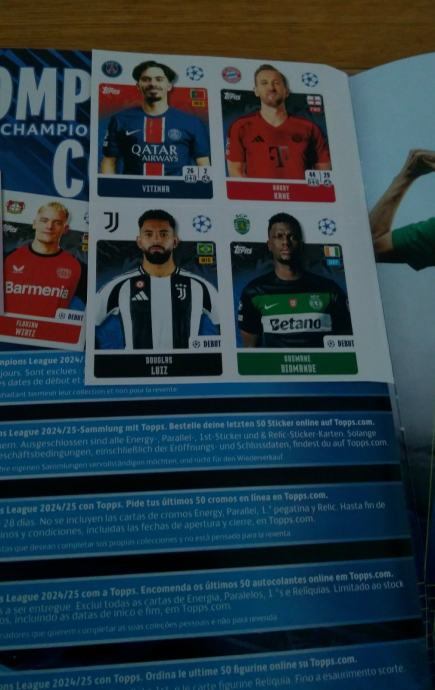 UEFA Champions League 2024-2025 (Topps) album za samoljepljive sličice sa početnih 6 sličica u albumu i narudžbenicom.
