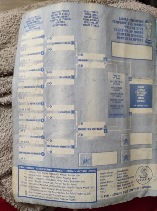 Odmah napominjem da u albumu fali par slicica,ali najbitnije su u albumu,poput Maradone ili Zubizarrete.Sta reci, legendarni album sa naj bojim nogometašima u povijesti.Tu su jedan MARADONA, ROBERTO BAGGIO ,STOICKOV, ,DINO BAGIO, SIMEONE, ,RIVALDO ,ROMARIO ,VALDERAMA,BEBETO ,CAFU , FERNANDO HIERO , BATISTUTA GABRIEL ,DA vise nabrajam POGLEDAJ SLIKE!! saljem u dogovoru sa kupcem, Poštom ili Tiskom,,stanje albuma je kao da je iz 94 godine,ali ipak solidno ocuvan,nema poderanih djelova itd.