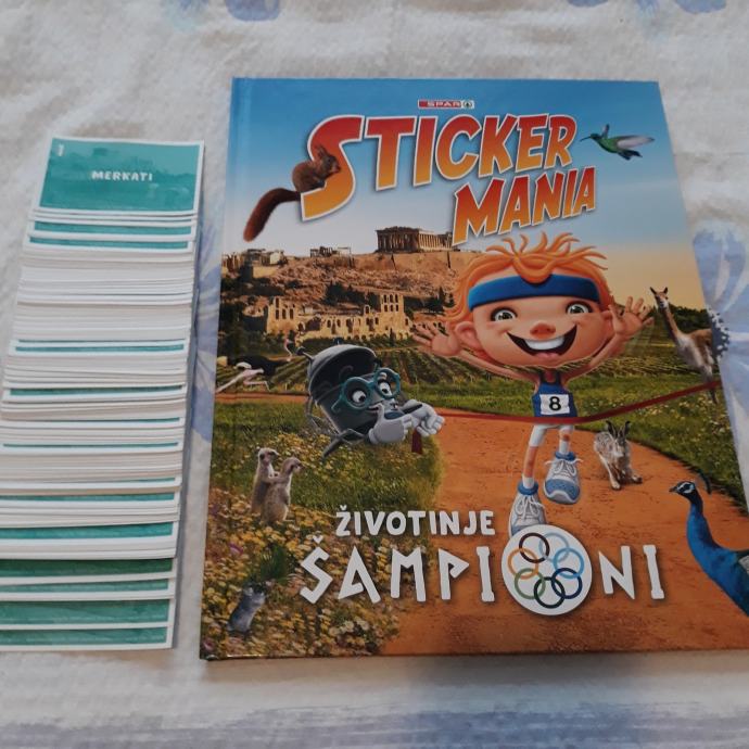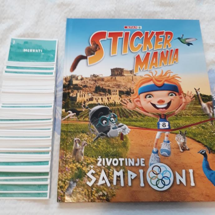 KOMPLETAN SET SLIČICA + PRAZAN ALBUM...ŽIVOTINJE ŠAMPIONI...SPAR...