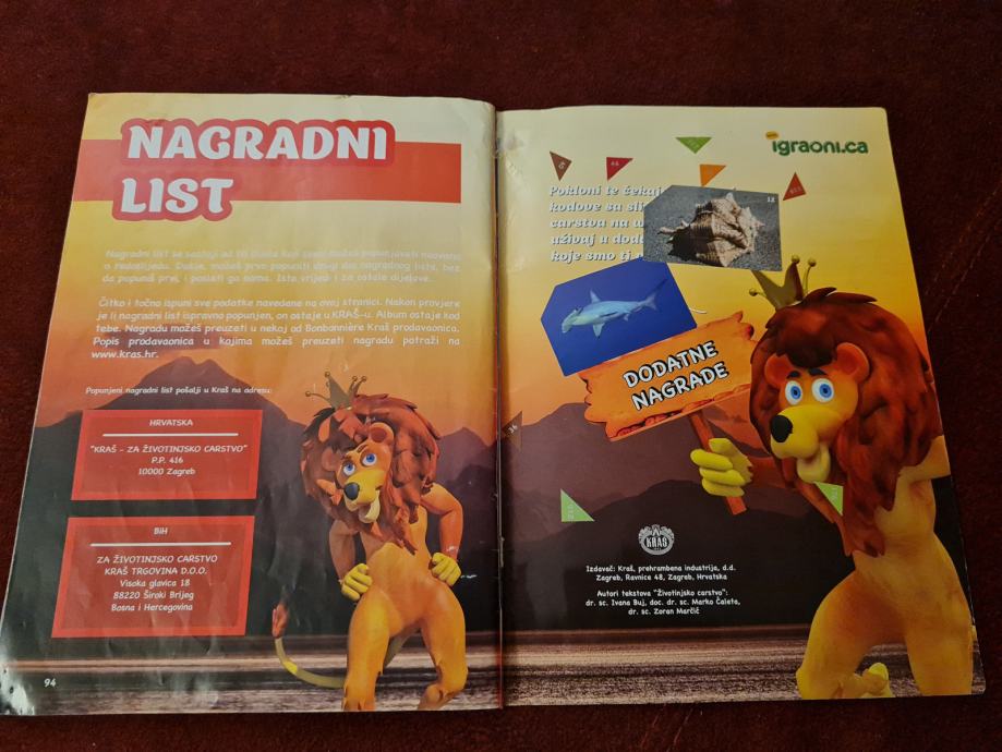 ŽIVOTINJSKO CARSTVO - KRAŠ, album sa sličicama - kompletno popunjen