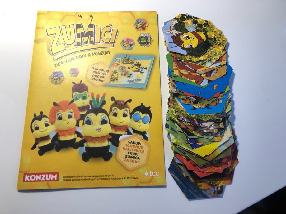 Prodajem Zumiće iz Konzuma koji su mi ostali nakon kompletiranja albuma. Cijena simbolično 1kn komad+poštarina 5kn. Ako netko želi sve (oko 150 komada), 50 kn. Prekrasne su i kao naljepnice.Plus imam ovih zlatnih zumića koji su se lijepili za plišanke.